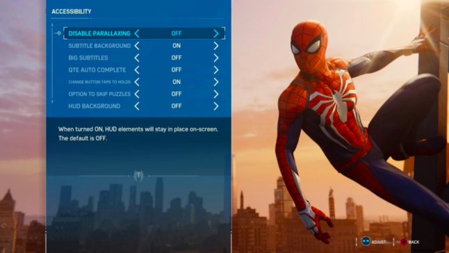 By including options like this, the dev team removes obstacles that may prevent players from being able to play an enjoy the game in its entirety because of issues with rapid button presses required for QTEs or missed information from difficult-to-read small subtitles, ultimately opening Spider-Man up to even more players.